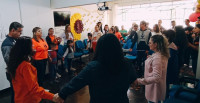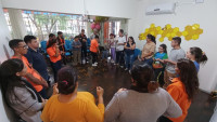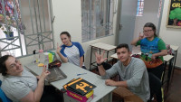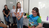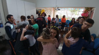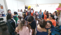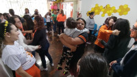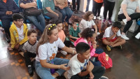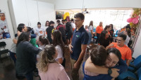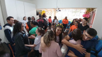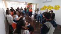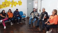 Além da boa música, os alunos puderam partilhar experiências vividas nas férias, ouvir algumas músicas com mensagens reflexivas e fortes abraços.