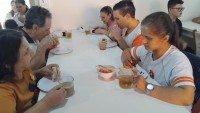 Após um delicioso café, e muita música boa, a diversão foi por conta do Prof. Marcos Moraes da oficina de musicoterapia e do seu companheiro musical Rafalel Faccin, logo após os alunos foram conduzidos para um momento de reflexão, que ficou sob a responsabilidade do Psicólogo Alesson Gomes, que falou sobre “Auto Cuidado”, cuidando de quem cuida, priorizando a Si mesmo. O assunto teve como relevância principal, voltarmos para as qualidades pessoais, promovendo diariamente o ato da gratidão e do reconhecimento para com os pontos positivos desenvolvidos por cada pessoa. Elencando três qualidades e uma conquista, cada aluno expressou-se conforme orientado pelo Psicólogo.